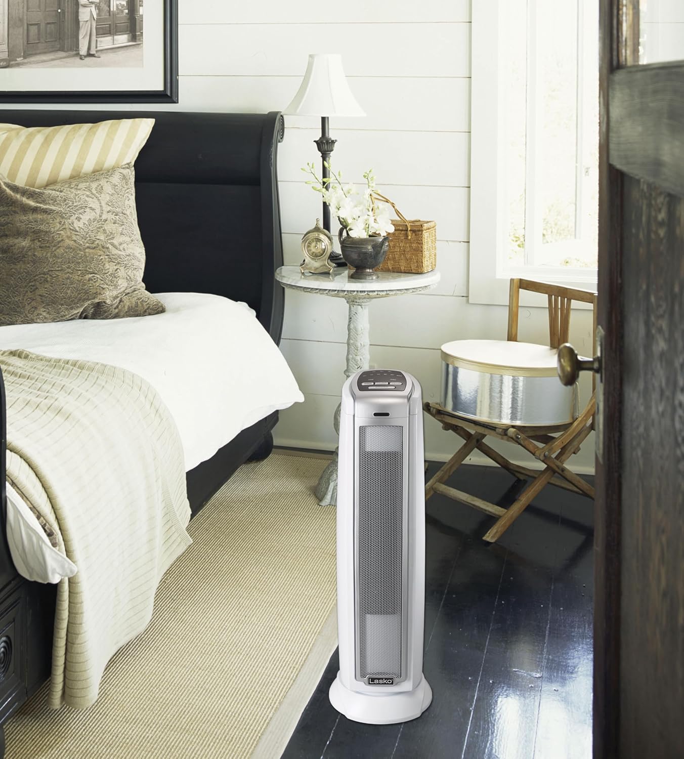 This ceramic tower heater from Lasko adds quick warmth to your den, bedroom or home office. Turn down the whole-house thermostat and warm just the room you’re in with this powerful space heater. The patented comfort system projects 1500 watts of comforting heat into the space, while the compact size and built-in carry handle allow you to easily transport from room-to-room. Features include 7-hour auto-off timer, 2 heat settings, and thermostat function. Equipped with built-in safety features, including automatic overheat protection, safe ceramic element, and cool-to-the-touch housing. Comes fully-assembled with a 3-year limited warranty.