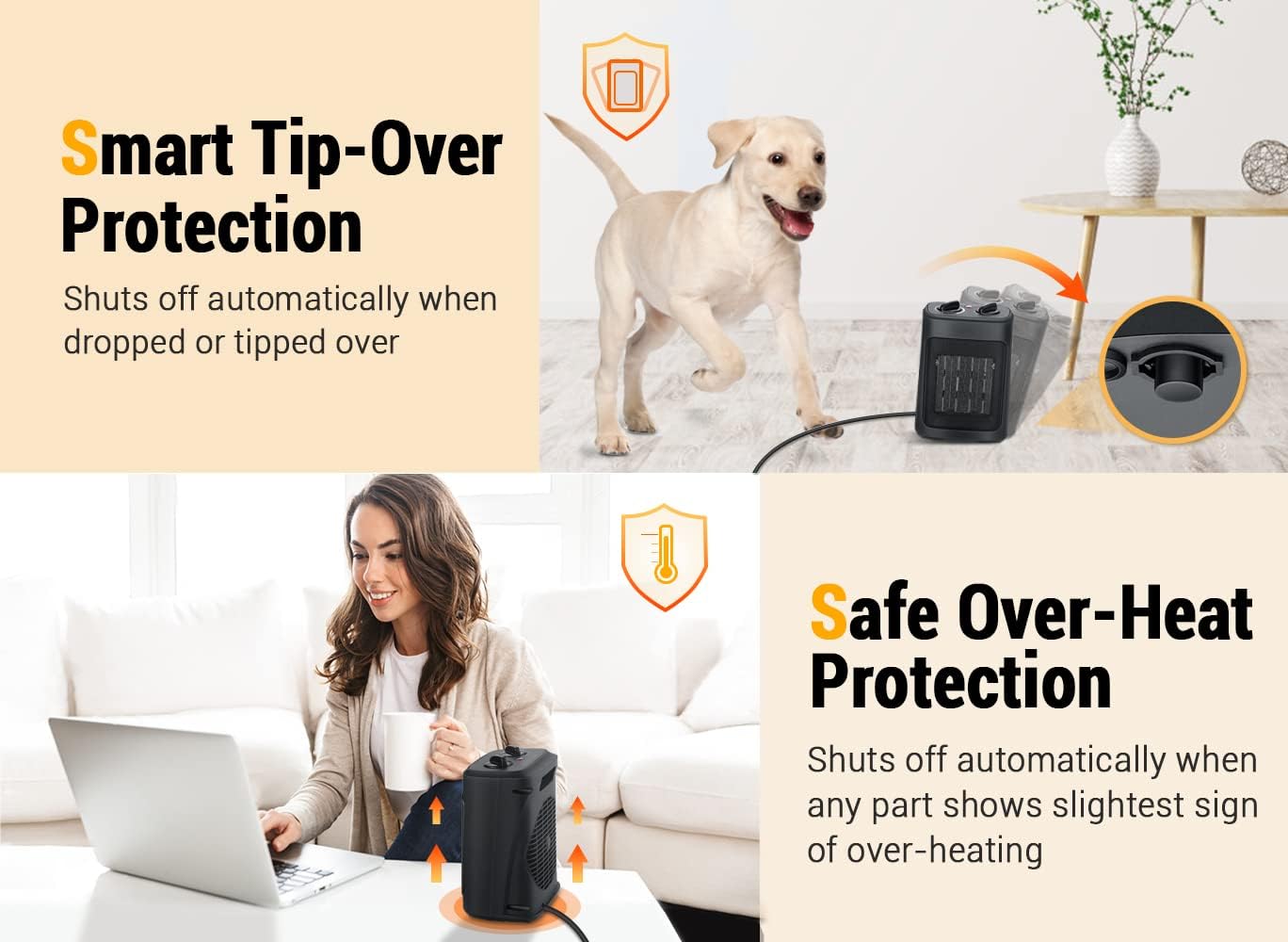 YOUR PEACE OF MIND IS OUR PRIORITY: We have ensured the safety of you and your loved ones by adding an advanced overheat protection sensor as well as a smart tip-over switch, which will automatically turn off the heater in case it overheats or gets tipped over by your kids or pets.