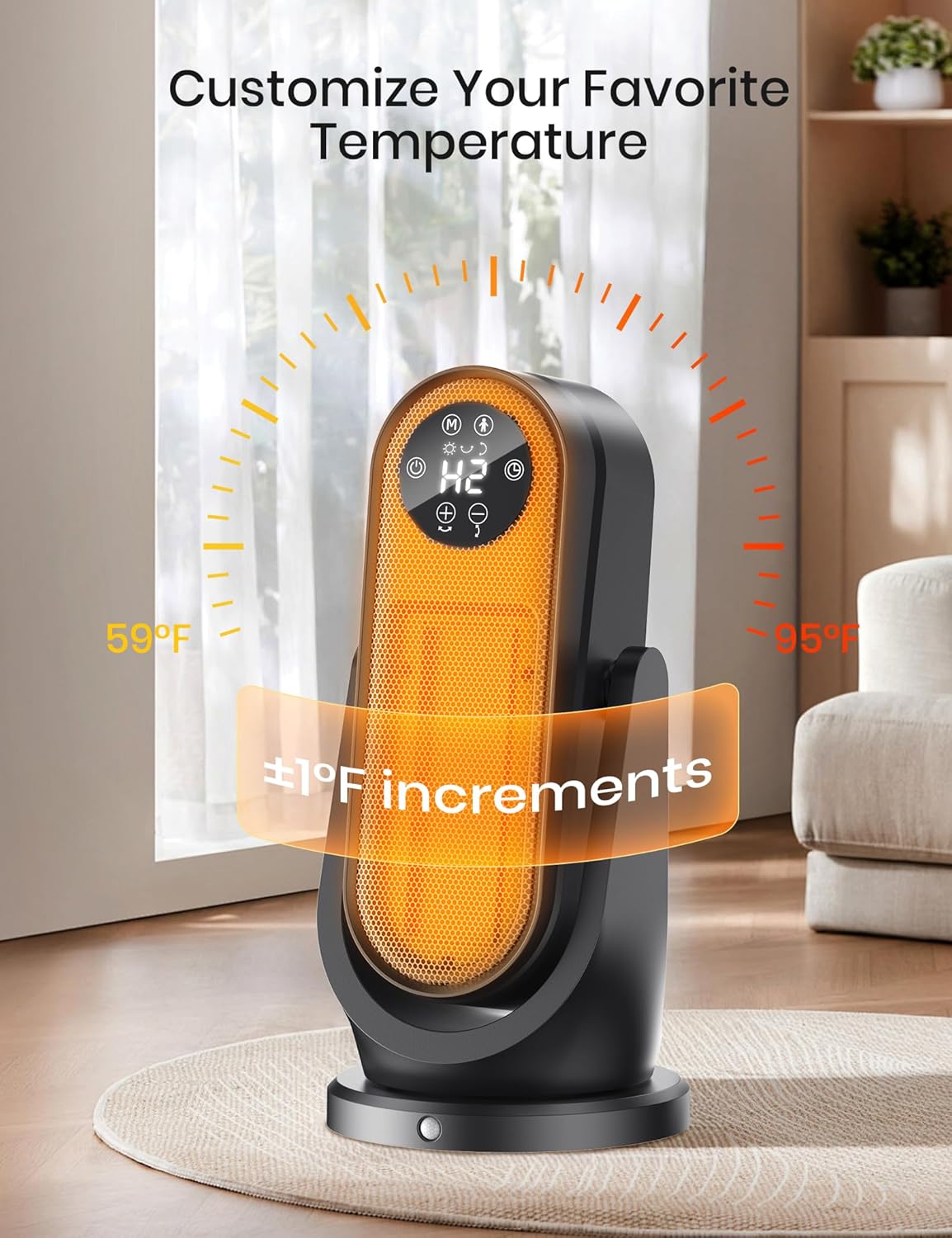 [Powerful ECO Mode]: Smart ECO mode has a built-in adjustable digital thermostat that accurately measures the room temperature and automatically adjusts the heating. The temperature can be set between 59-95°F with an accuracy of 1°F. It ensures precise heating and customization of your favorite temperature. This helps save energy while keeping you warm and comfortable.